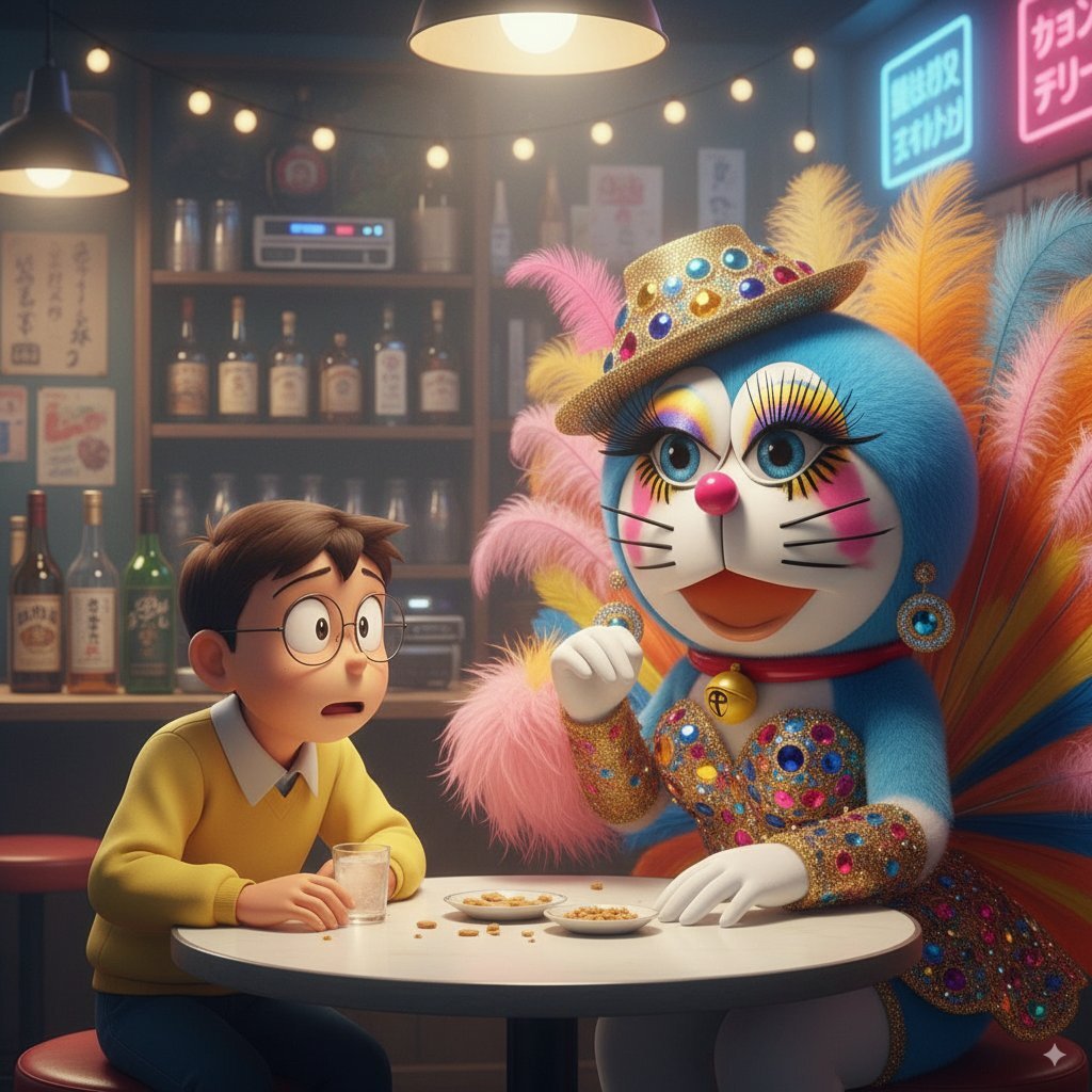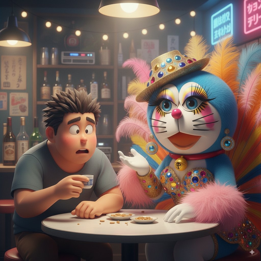 #オネェもん #AI画像生成 4次元ポケットを失った今、強く生きるオネェもん スナックのママとして第二の人生を謳歌する今 悩みを打ち上げに来る仲間がお店に来る 。。。 pic.x.com/DPjreIoenC