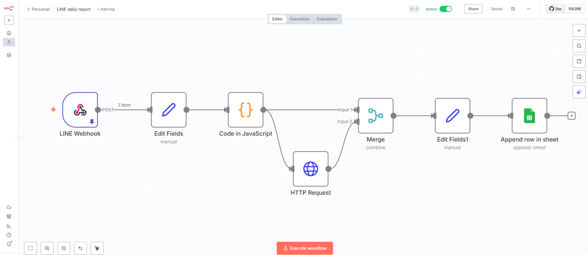 「LINE → Googleシート」日報自動保存フローを作成しました。 ・LINE Messaging API ・n8n(Webhook → JSON整形 → Google Sheets) ・自動タイムスタンプ 日報を集計している暇がないという方におすすめです。 #n8n #業務効率化 #中小企業DX #AI自動化 pic.x.com/fFQxz3xxym