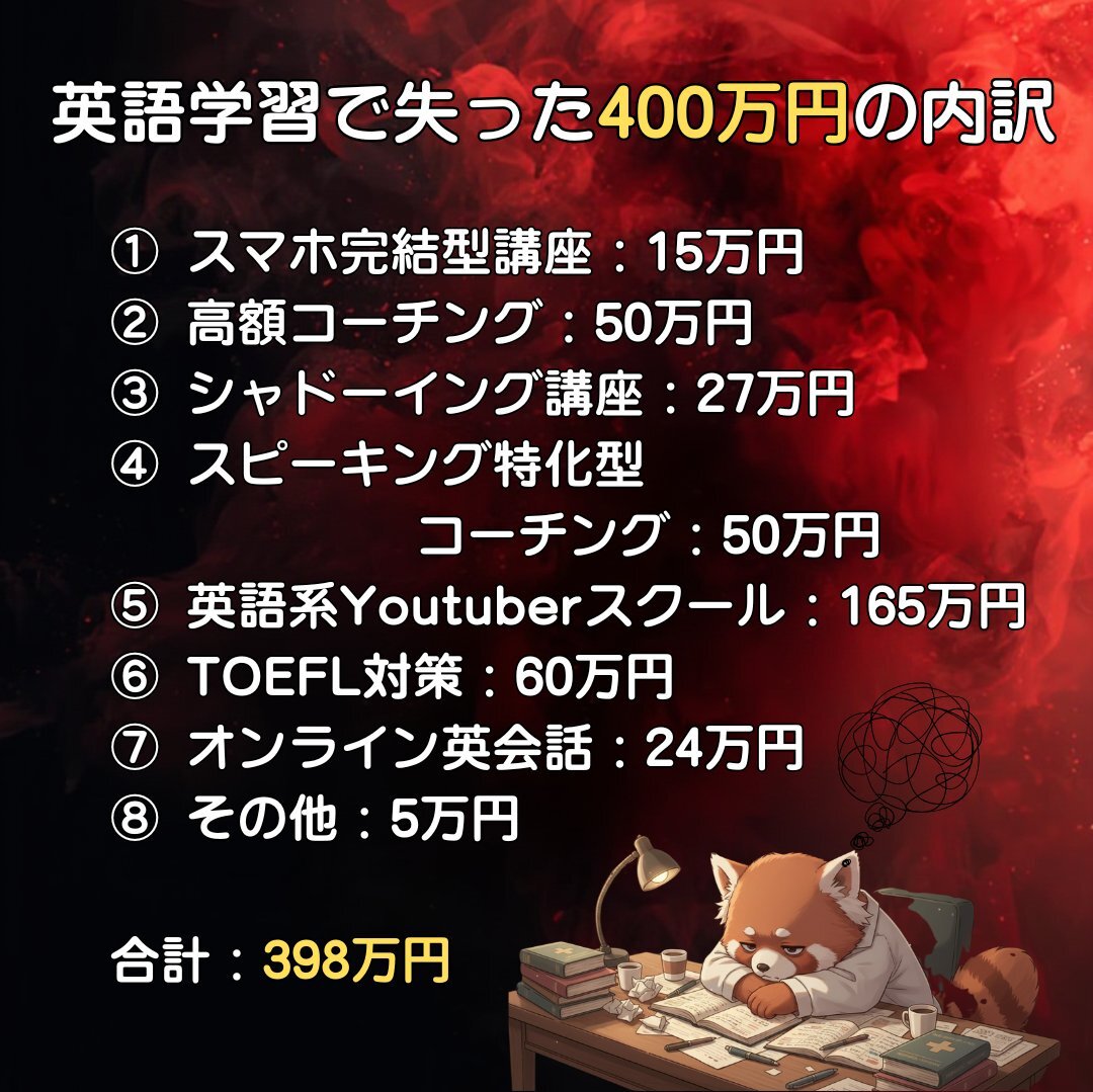 この内訳、見覚えありませんか? noteで全ての失敗を公開しました👇 note.com/906okrbt/n/na3… #英語学習 #英語学習垢さんと繋がりたい #イマージョン #AI英語学習 pic.x.com/32RfL3YrLO