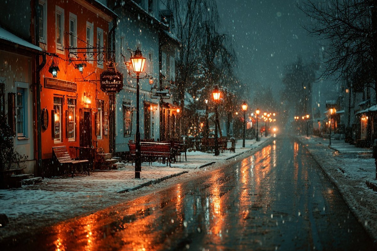 “雪が降る夜”は、映画みたいに空気が静かになる。❄️🎬 🎨 prompt: cinematic night snowy street, warm lanterns, emotional mood #AIPromptLab #Midjourney #AIart #雪景色 pic.x.com/rbRYqoh1mX
