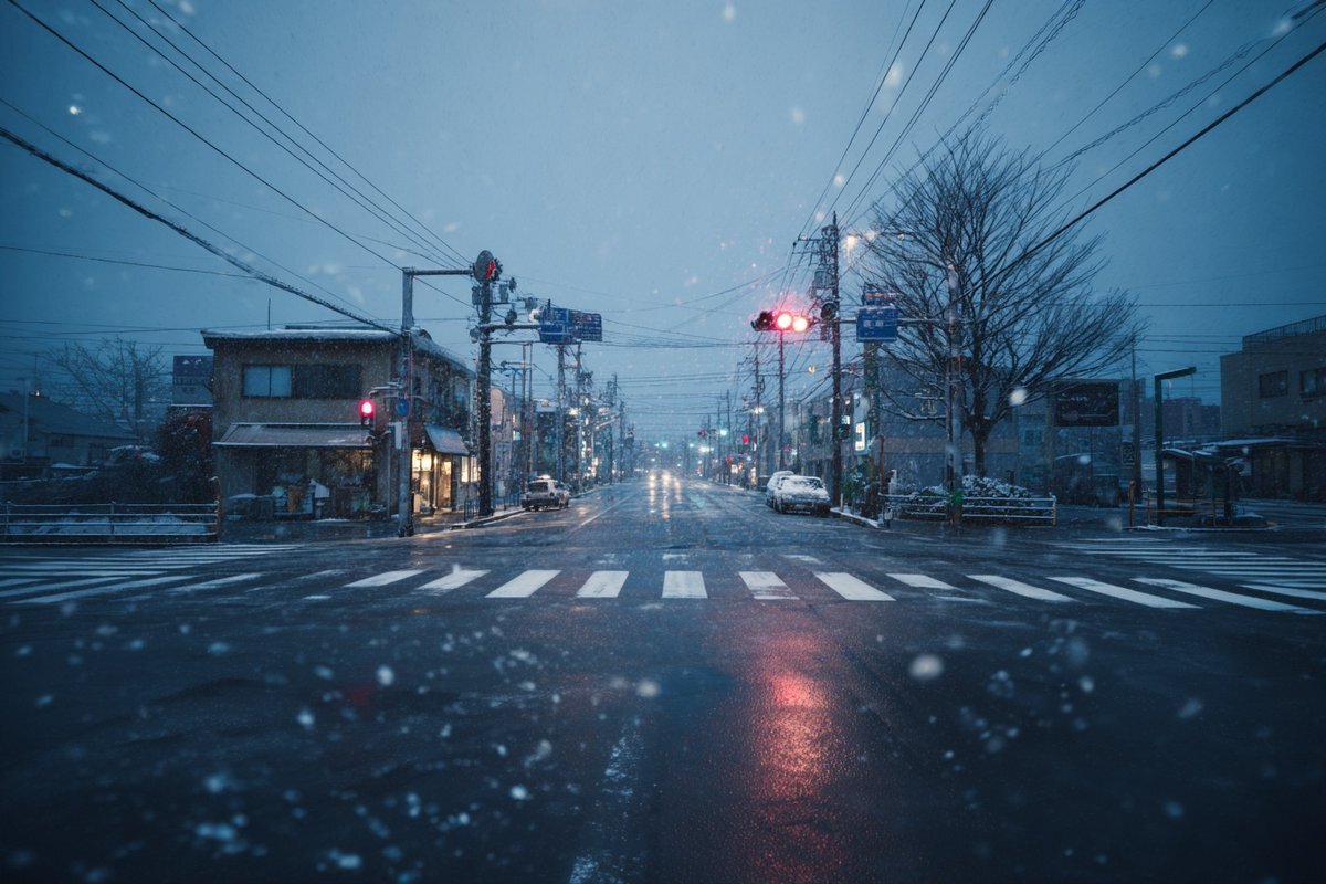 冬の夕方の横断歩道って、なんかストーリーがある。🎬❄️ 🎨 prompt: winter crosswalk at dusk, cinematic street photo #AIPromptLab #Midjourney #AIart #ストリートフォト pic.x.com/hcflsQVNzf