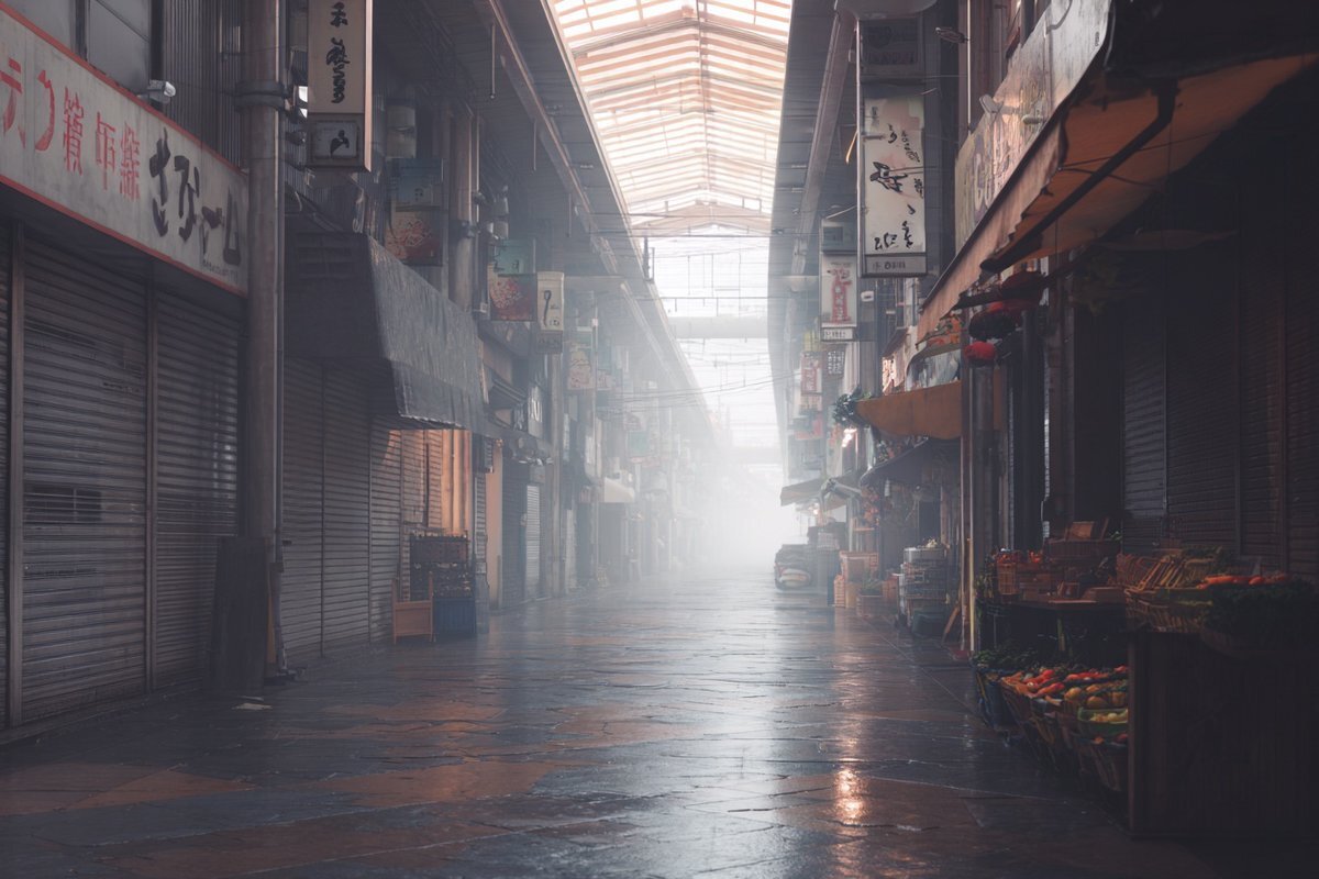 霧の商店街って、なんか“夢と現実の境界”みたいだよね。🌫️🕊️ 🎨 prompt: foggy morning Japanese shopping street, diffused light, cinematic mood #AIPromptLab #Midjourney #AIart #商店街 pic.x.com/pqWBvBTQVW