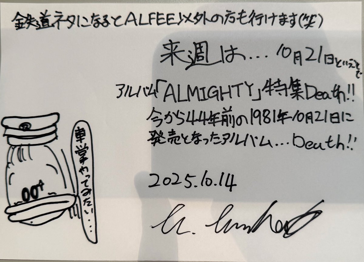 どうも、自称 番宣係の ヒロ左衛門Death ! 「木内康平のALFEE三昧」 本日18時30分から fmさくだいらで放送Death ! 聴いてあげてね!(゚∀゚) 今週の企画は…、以下のポストを参照! #THEALFEE #木内康平 #fmsakudaira #桜井賢 #坂崎幸之助 #高見沢俊彦 #ALFEE三昧 #ALFEE3人まだ地毛 x.com/alfeezanmai/st…