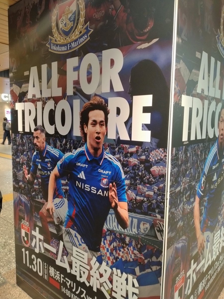 JR側からエスカレーター降りてきたら、ちらし&フラッグ&ポスターの方々でトリコロールと化してて「うおっ」と仰け反りながらテンションMAXでした!会社最寄り駅が!感謝!感動!感無量!ありがとう! ※シャシン撮りそこねた🫠ので改札前ポスターの方をパシャリ。感謝! #ALLFORTRICOLORE #fmarinos pic.x.com/Vttt89iFjC x.com/miTSUzawamarin…