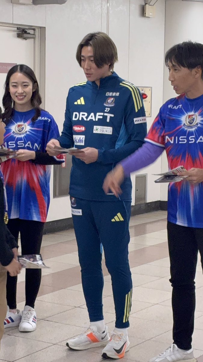 ちょうかっこいいサッカー選手が桜木町でチラシ配ってた😻みなさん日曜日は日産スタジアムへいきましょう‼️❤️🔥 #ALLFORTRICOLORE #fmarinos pic.x.com/hQijFXKD2k