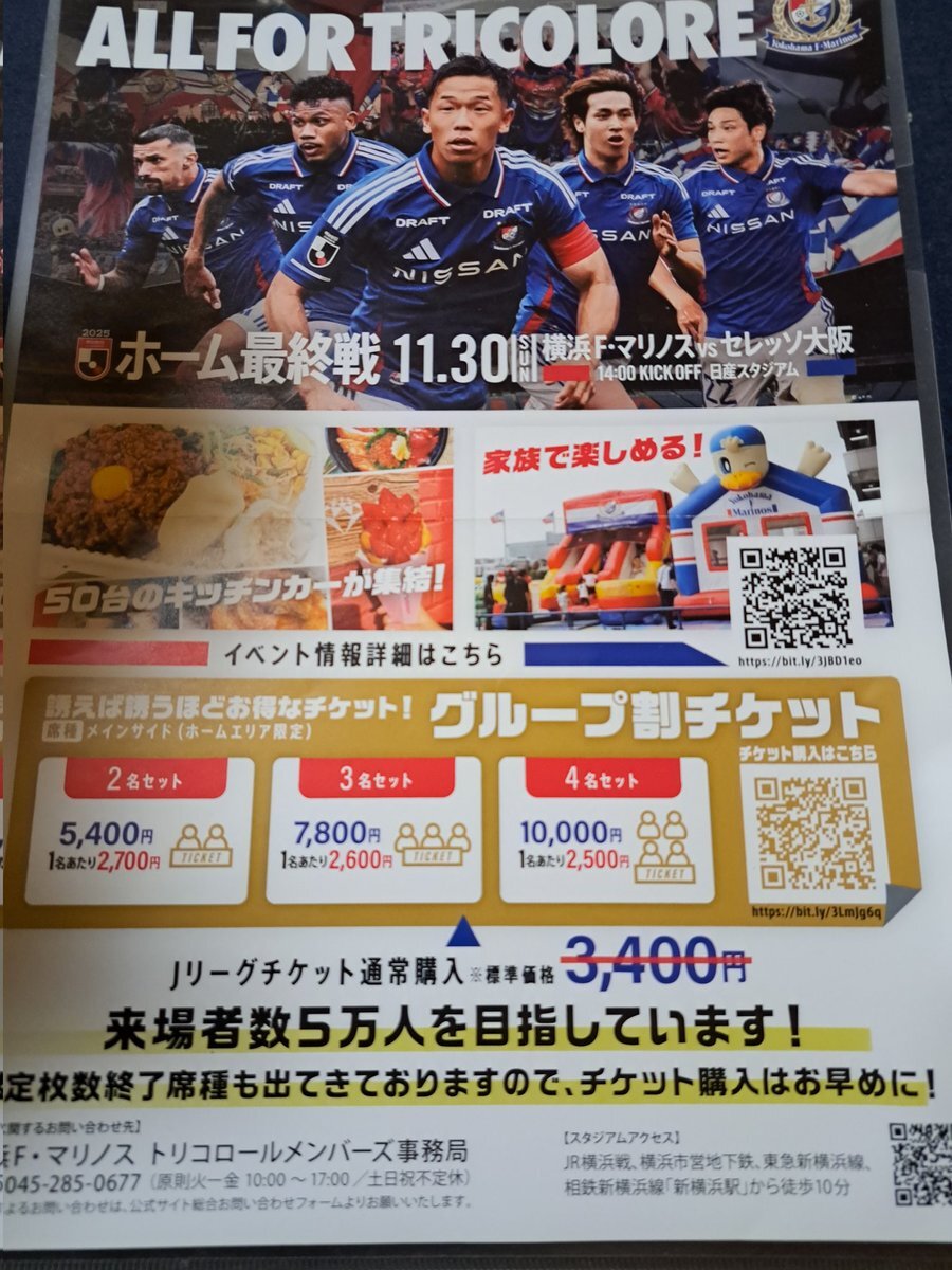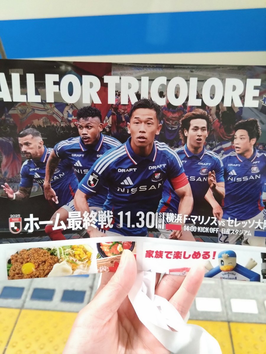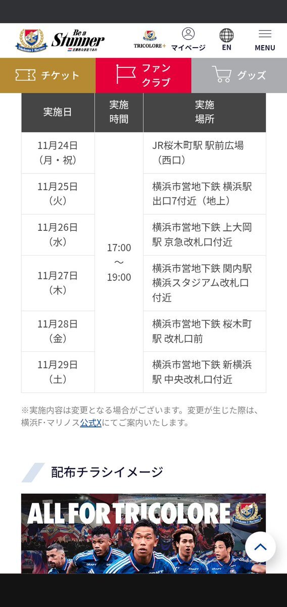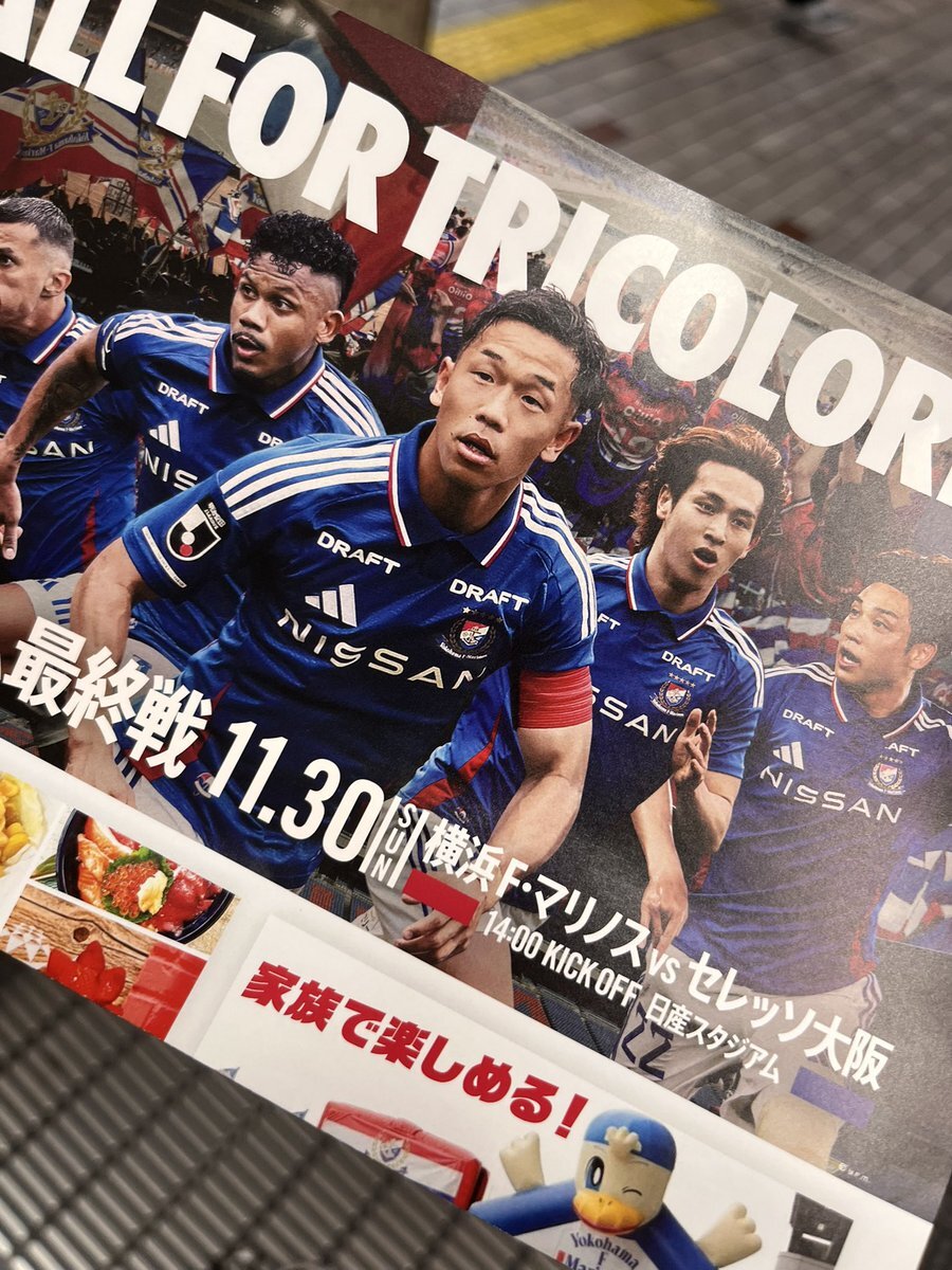/ 目指せ来場者5万人🔥 #ALLFORTRICOLORE プロジェクト⚓️ \ 横浜市営地下鉄 桜木町駅 改札口前付近にてチラシ配布がスタートしました✨ 11/30 (日) C大阪戦は日産スタジアムで14:00キックオフ⚡️ 🎫🔗 bit.ly/40rKYs5 #fmarinos
