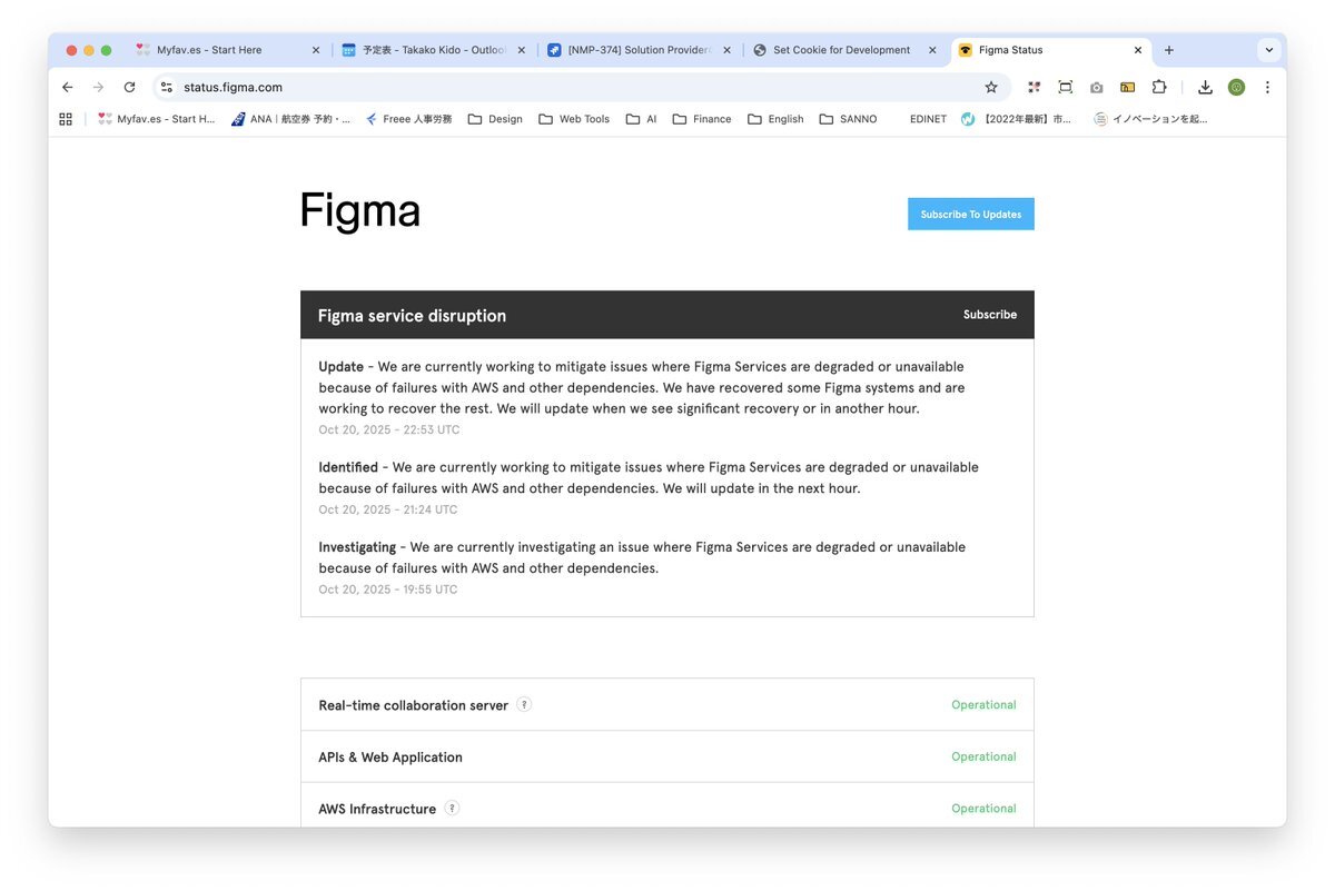 まだAWS障害の余韻が... 昨日はCanva、今日はFigmaが調子悪い。。😑 ネット障害っていつ起こるか分からないから、代替え案や対策をちゃんと考えておかないと、依存してたら何もできなくなりますね🤔 切り替えて、今日はまた違うツール使おっ🎨 #AWS x.com/i/grok/share/C…