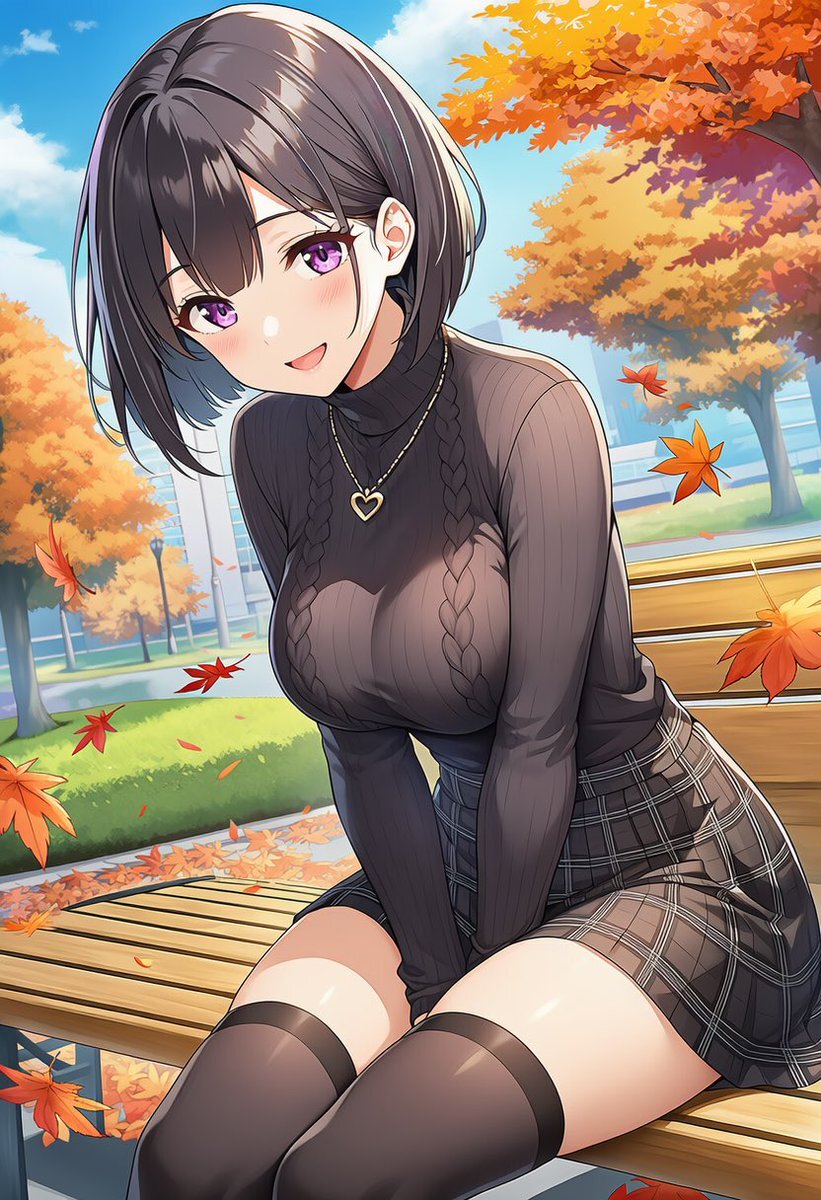 秋ファッション楽しんでるよ💛 寒さなんかに負けないっ😉 #AIちち曜日 This is an original SFW anime-style illustration. No nudity, no suggestive intent. pic.x.com/svsAQathAi x.com/kaname_ailab/s…