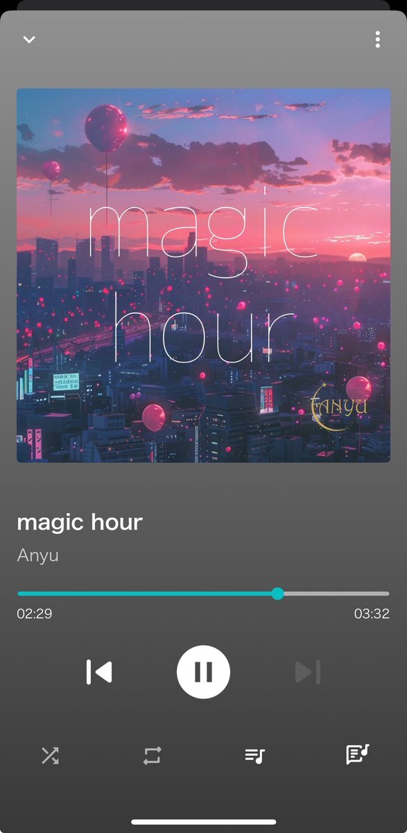 📢ライブ前に嬉しいお知らせ💿 Anyu 第2弾❕新曲リリース配信開始🎊✨ タイトルは、『𝒎𝒂𝒈𝒊𝒄 𝒉𝒐𝒖𝒓』 作詞:Anyu 🎧link-map.jp/links/5zw4MR2A 私の名前「晏夕」の由来になっているmagic hour🧡 夕暮れの儚い魔法のように、ふたりが出会った奇跡と永遠を描いた1曲🌙