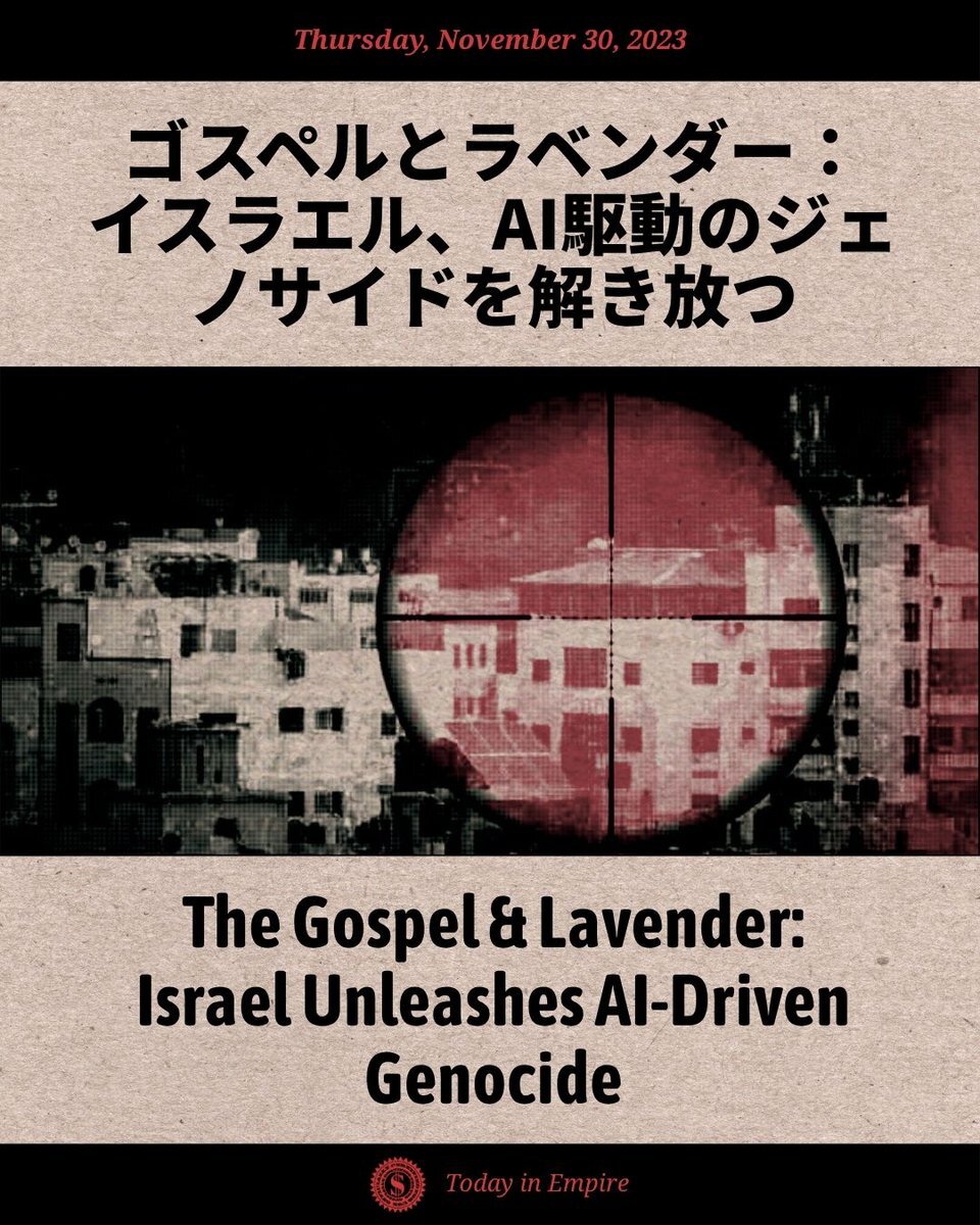 2023年のこの日、+972マガジンやローカル・コールのようなメディアによって公表された、ガザでのジェノサイド作戦を自動化するためにイスラエル軍が使用する、2つのAI搭載システムの存在が明らかになった。#todayinempire #ai #militaryai #thegospel #lavender #killlists #artificialintelligence pic.x.com/cTG4EGPh2u
