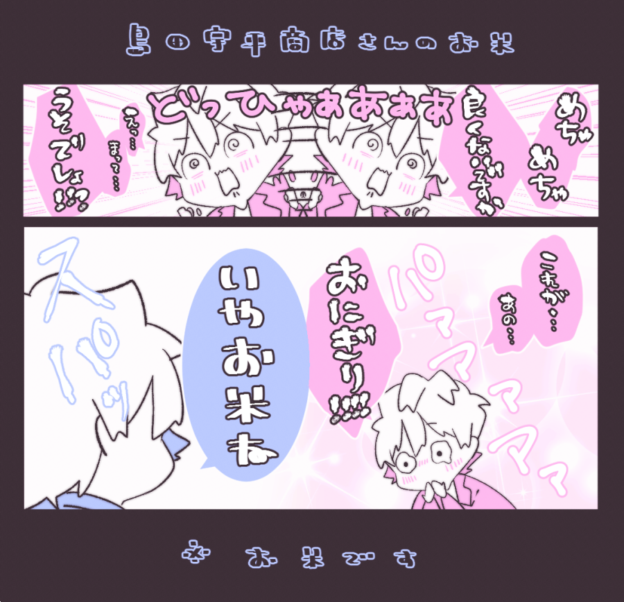 【After the Rain まふまふの日 レポ④】 手作りバングルの他にプレゼントとして贈られる島田宇平商店さんの高級お米!映像の最後にお米の試食として美味しいおにぎりを頬張るそらるさんの印象が強かったためか、おにぎりが贈られたと勘違いをするまふまふさんが可愛らしかったです。笑 #AtR_123 pic.x.com/LeHrc81FWc