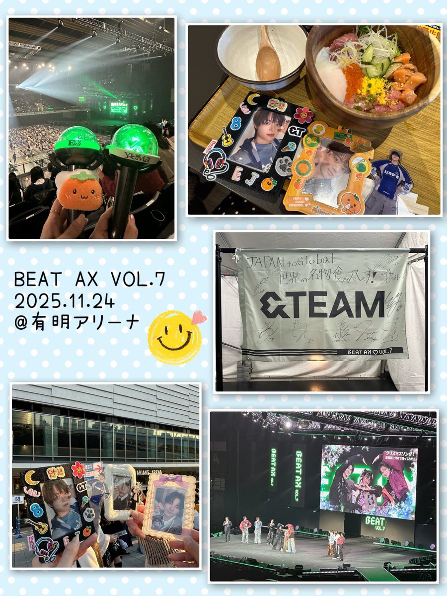 -2025.11.24- BEAT AX ♡DAY2 ステサイ目の前という大変ありがたいお席でした😭妹にも近くでEJくん見せてあげたいと思ってたから大喜びしてくれて姉は嬉しかった💕 &TEAMと出逢ってから毎日がほんと幸せって心から思うし、だからこそメンバーにも元気で笑っててほしい💫 #BEAT_AX_VOL7 #andTEAM pic.x.com/oVZefhq3z8