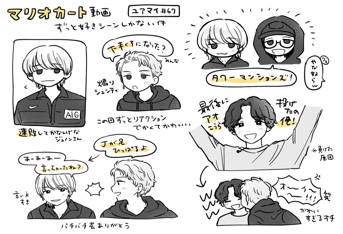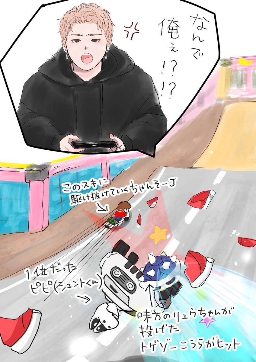 ビファもマゼも供給が多くて ちょっと日にちが経つと時差感すごいー… と思いながら描いてたマリオカートユアマイです シュントくんずっと怒っててかわいい #BEFIRSTファンアート pic.x.com/2VDzswdiL9