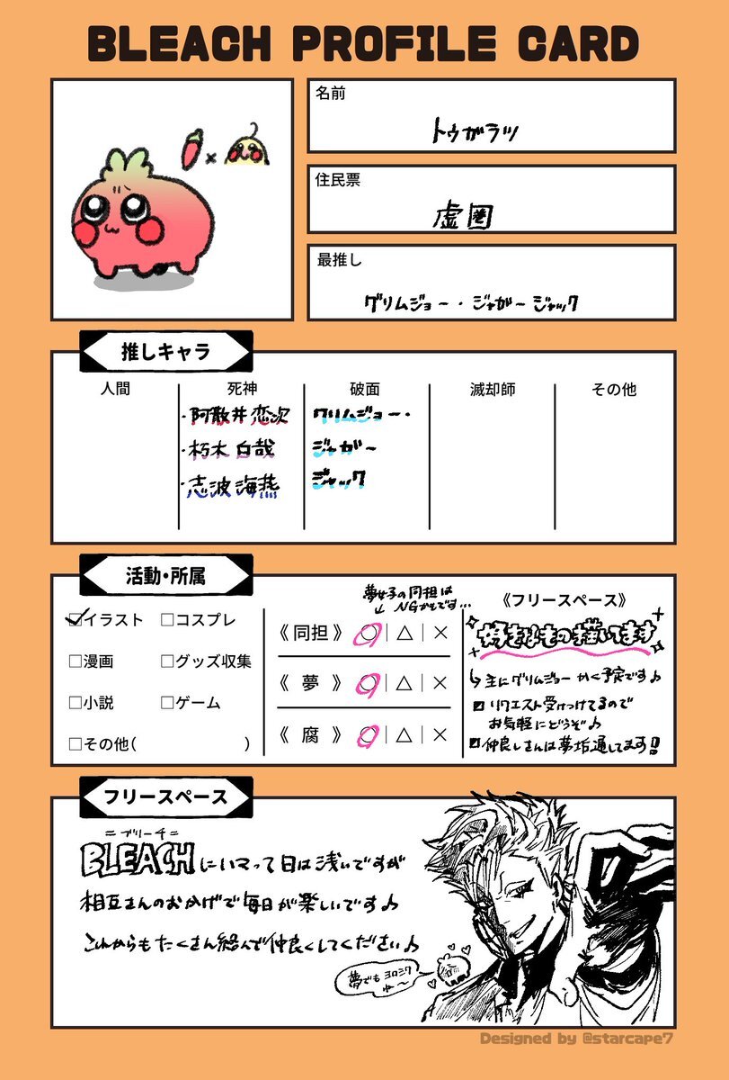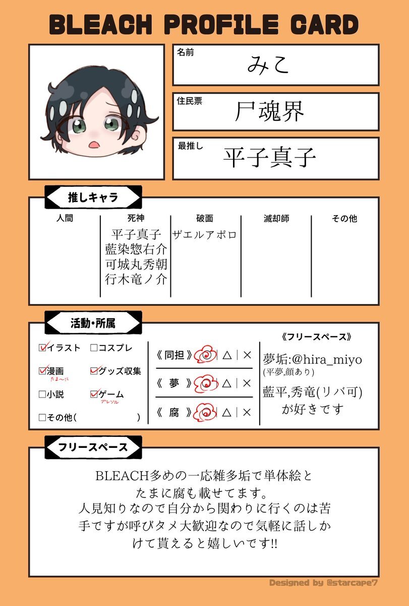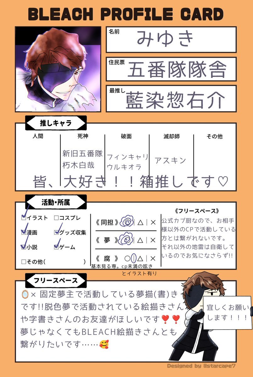 全反応巡回します!!気になった方無言でお迎えさせてください>< #BLEACHPROFILECARD #BLEACH絵描きさんと繋がりたい #BLEACH好きな人と繋がりたい #BLEACHクラスタと繋がりたい pic.x.com/h5Uco2clBD