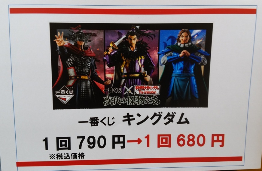 ⬇️早くも値下げですっ⬇️ #一番くじ 春秋戦国大戦キングダム The Animation 次代の傑物たち 1回 790円→680円です 残り17回(回数制限はありません) 一番くじ倶楽部⬇️お気に入り店舗のご登録お願いします1kuji.com/shops/60163 #砺波 #BM砺波くじ #キングダム