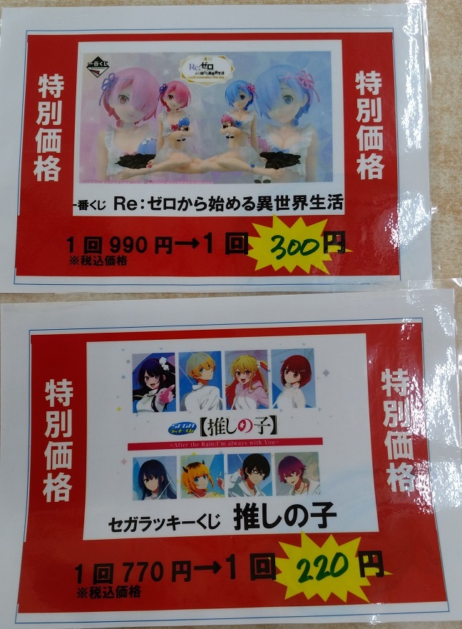 ⬇️⬇️更に値下げしました~⬇️⬇️ #リゼロ  残り34回 #推しの子 残り35回 #おさるのジョージ 残り29回 #桃源暗鬼 残り14回 #ピュレグミ 残り21回 #BM砺波くじ pic.x.com/eXVLlkw9fn