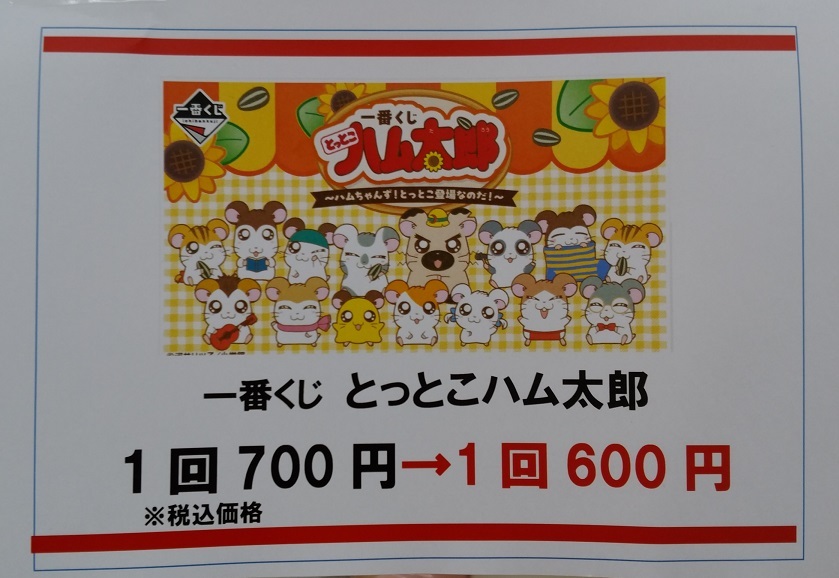 ⬇️値下げ販売中です⬇️ #一番くじ #とっとこハム太郎 1回 700円→600円です 残り11回です‼️ ラストワン賞はクッションです まとめて購入いかがでしょうか~ 一番くじ倶楽部⬇️お気に入り店舗のご登録お願いします1kuji.com/shops/60163 #BM砺波くじ #ハム太郎