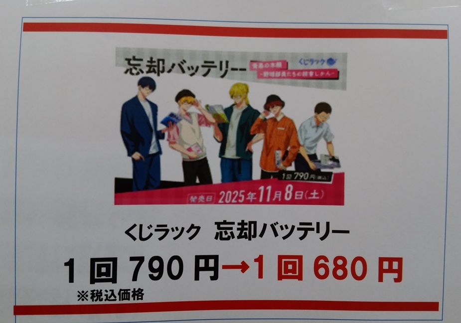 ⬇️値下げ販売中です⬇️ #くじラック #忘却バッテリー 1回 790円→680円です 残り67回です(回数制限はありません) 詳しくはこちら ▶️fantasulife.com/blogs/news/bou… #砺波 #BM砺波くじ pic.x.com/4l9sOeWF6C