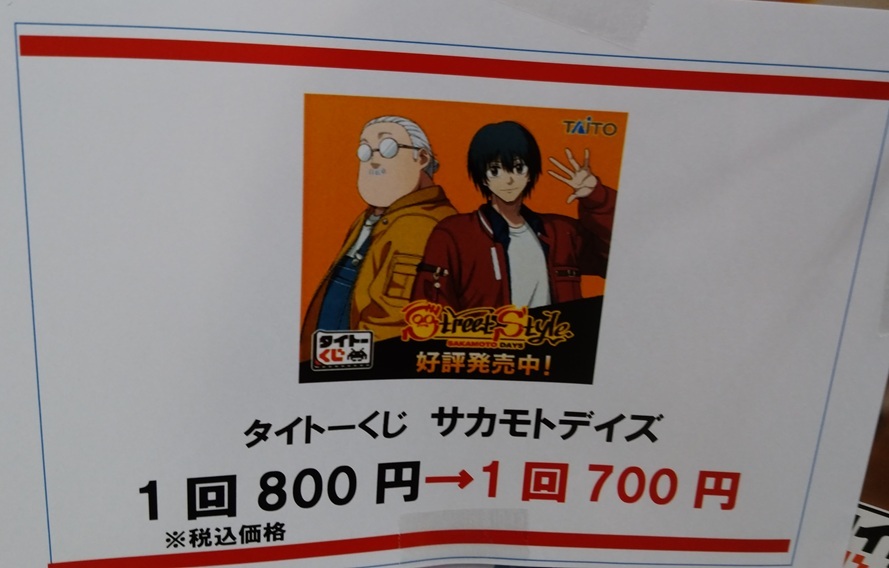 ⬇️早くも値下げですっ⬇️ 砺波地区は当店のみ #タイトーくじ SAKAMOTO DAYS Street Style 1回 800円→700円です 残り54回です(回数制限はありません) 詳細はこちら▶️ taito.co.jp/taitokuji/item… #BM砺波くじ #サカモトデイズ #SAKAMOTODAYS pic.x.com/c851wKHEiZ