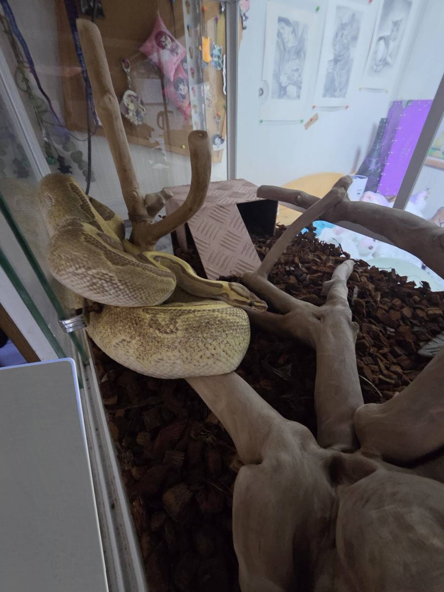 今年中には繁殖可能サイズにアップ予定 同じモルフ同士でかけるか、グレイルをかけちゃうか検討中🤔 #ボールパイソン #Ballpython Pastel Leopard D het Lavender Clown ♀ pic.x.com/40Ud9E5uZe
