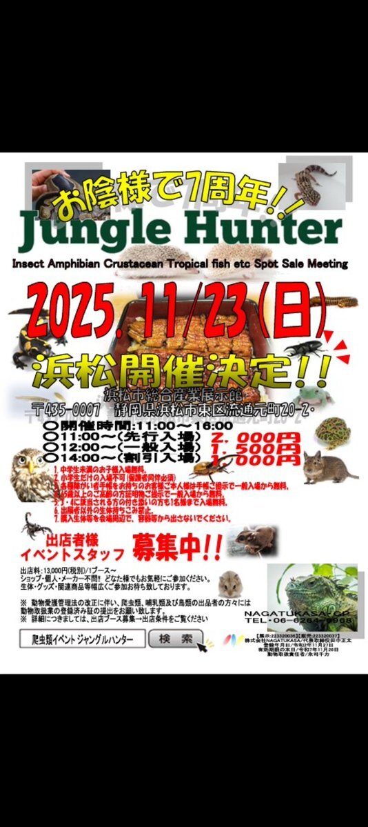 11月23日(日曜日) ジャングルハンター出店します😊 お気軽にお立ち寄り下さいませ☆ 「バナナの家」 11時〜開けまーす\(^o^)/ #バナナの家 #ボールパイソン #爬虫類 #ballPython