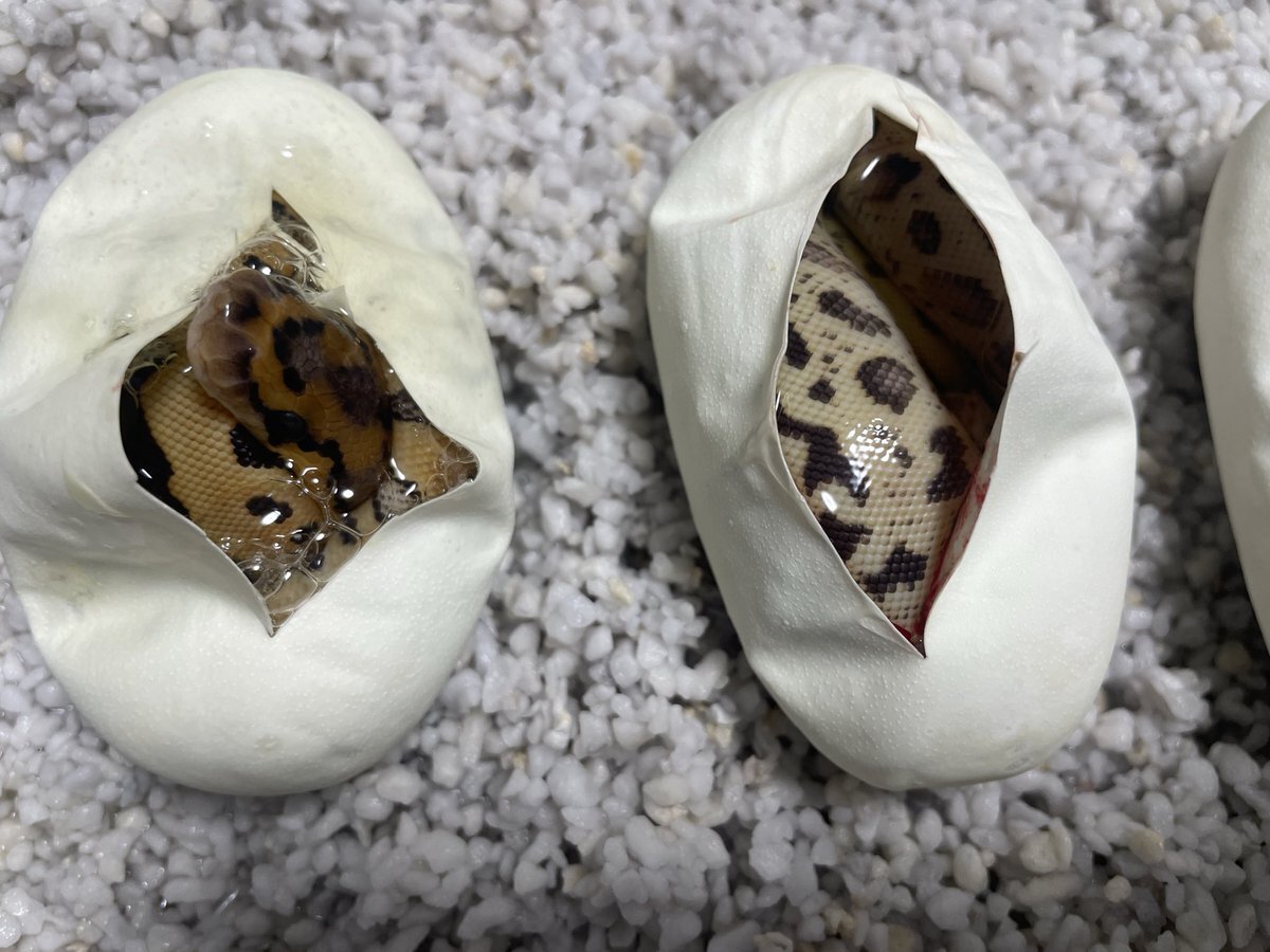 ラスト・クラッチ (#25) Pastel Leopard OD het Clown ♂ Fire +α Clown ♀ の筈ですが、1匹が真っ白… 今年は謎のベビーが多い。 3,4枚目は親 #ballpython #ボールパイソン #BMMcb pic.x.com/UFC9KnFZYr