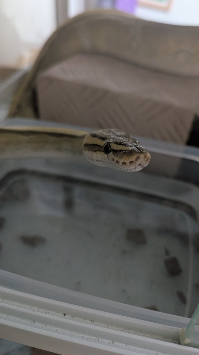 脱皮と同時に7ヶ月半ぶりに食事 ぜんぜん食べてなかったのにぜんぜん痩せて無いのはなぜ❓ #ボールパイソン #Ballpython Enchi D het Lavender Ghost ph Pied ♀ pic.x.com/mTFe4qHBmb