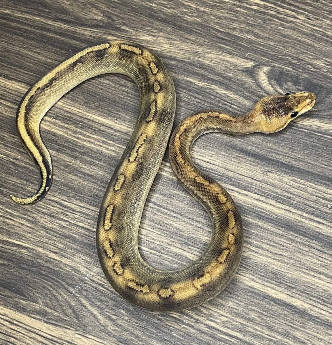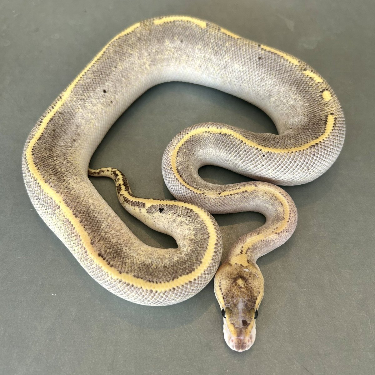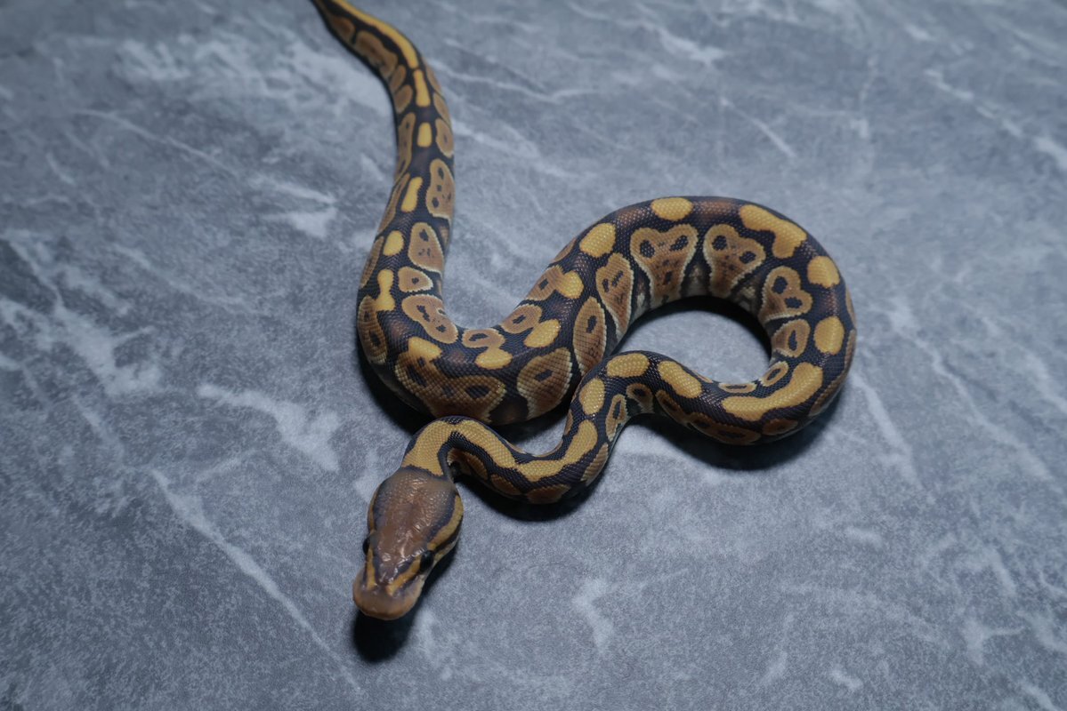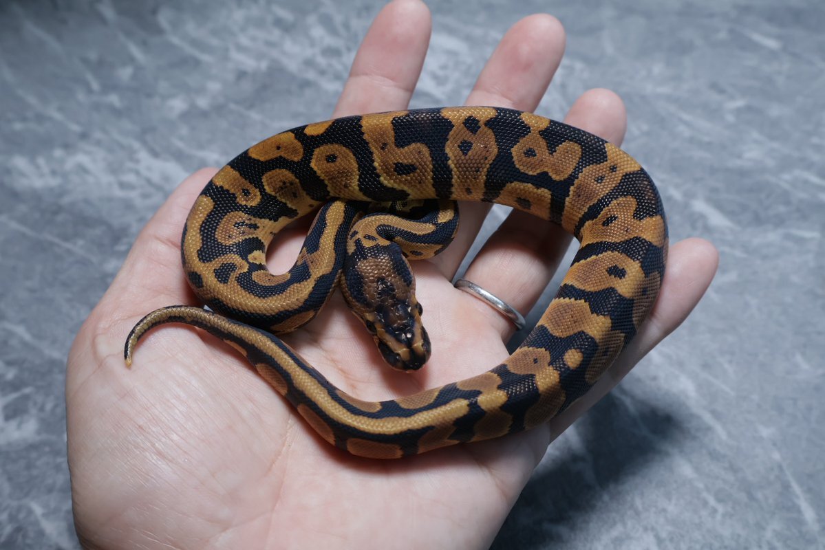 リンガー入りなのでより一層ジャミジャミ感山盛り 繁殖可能サイズになったけど、何のモルフのためにキープしたのかをすっかり忘れてしまって彷徨う飼い主 #ボールパイソン #Ballpython Pastel Sugar YB/ Asphalt ♂ pic.x.com/CkbTSHg0np