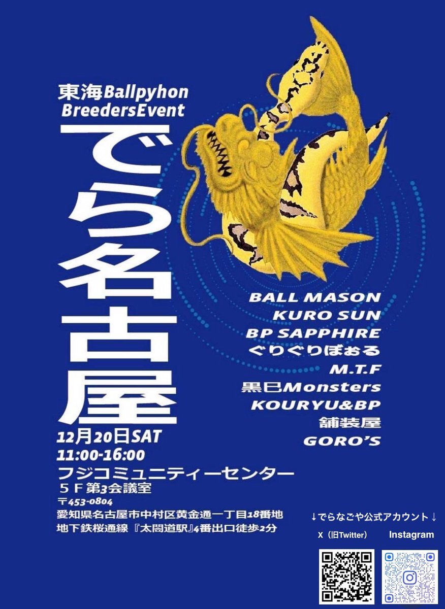 the GALLERY 2025年12月14日(日) 11:00-17:00 会場@G_C_R_F 静岡県磐田市下本郷1051-1 入場無料 06Shockwaveとの合同自社イベントになります。皆様の御来場をお待ちしております。 #theGALLERY #ボールパイソン #ballpython pic.x.com/mWPTyAKZOm