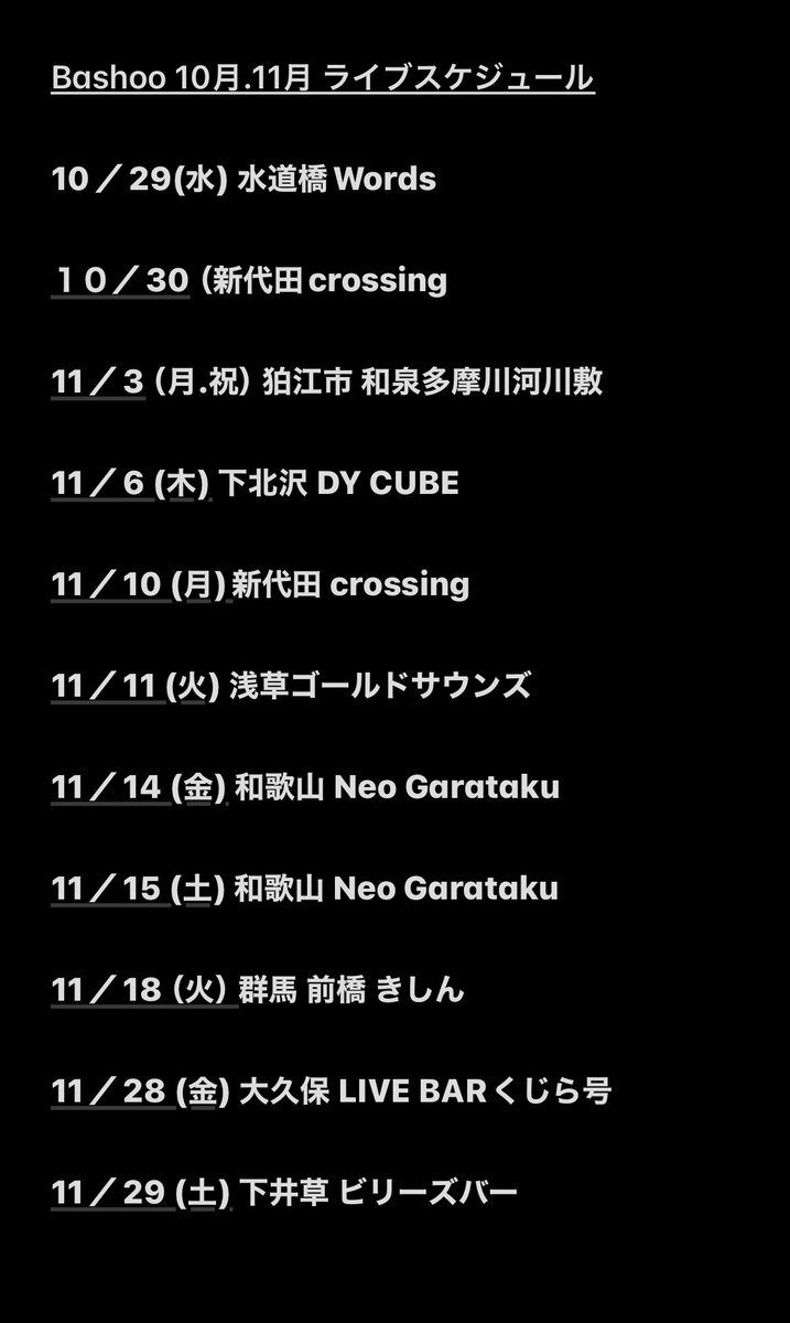 #mayuのMUSICLIFE レギュラー #Bashoo くんの 10月. 11月のライブ情報になります! BashooくんのX、ホームページも、是非こちらからチェックしてくださいね! BashooくんのX👇 x.com/bashoo_is_me?s… ホームページ👇kshomaofficial.wixsite.com/bashoo pic.x.com/kl9c1ww8wZ