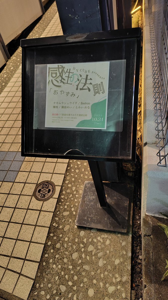 2025/10/21 (火) 今夜のライブはここでした🎵 感性の法則「おやすみ」 at.下北沢DY CUBE #ナカムラシュウイチ #璃咲 #蒲田めい #とみいれな #Bashoo pic.x.com/suF0ilf8fL