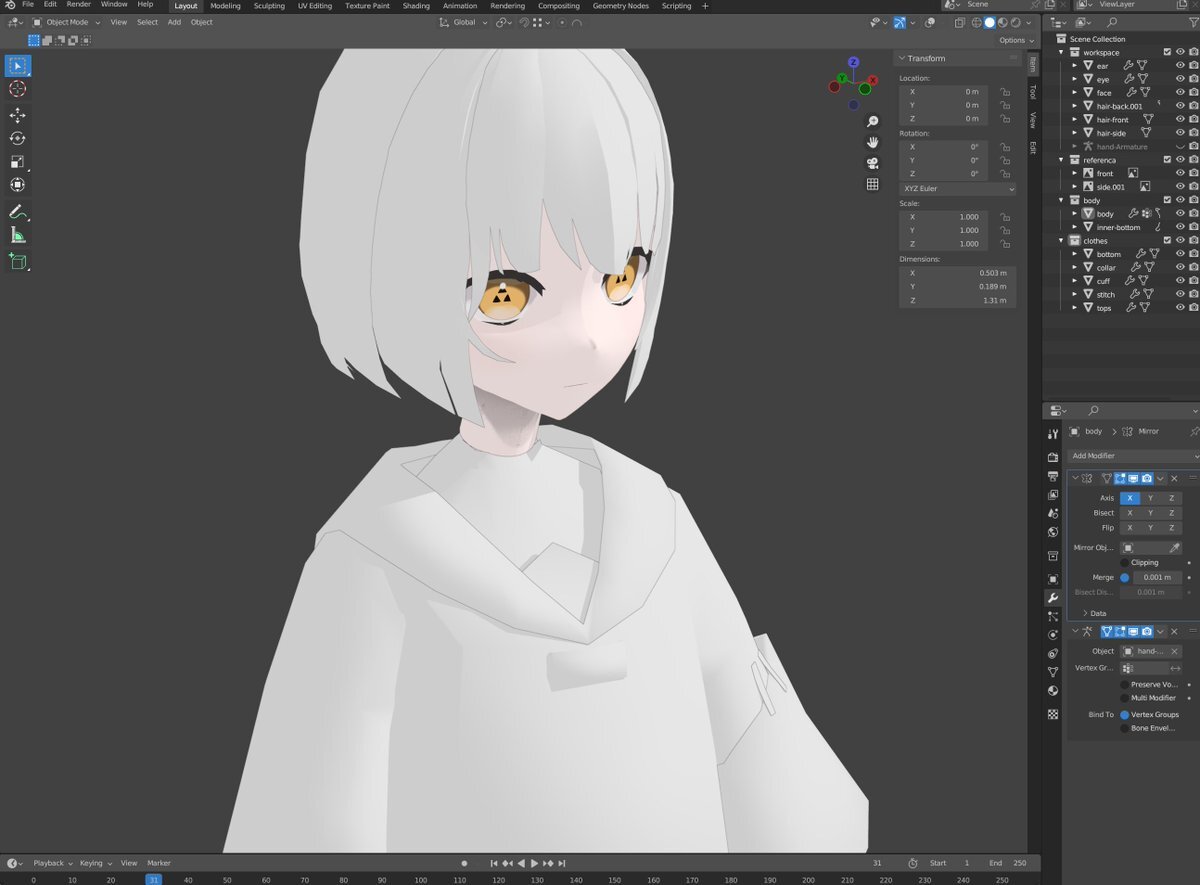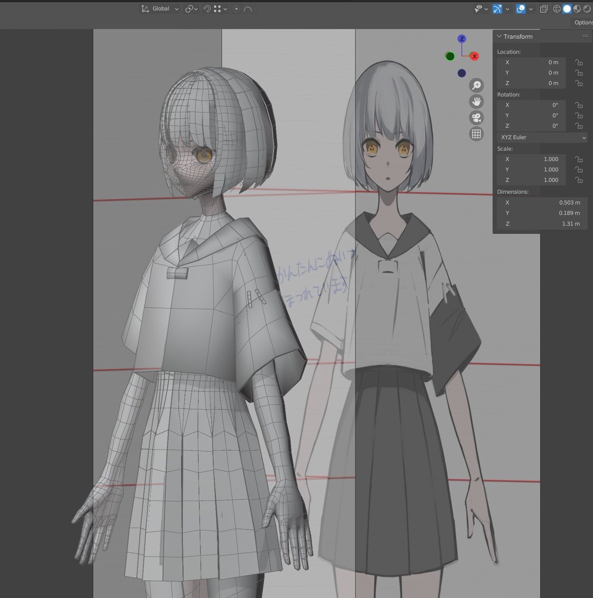 学マスの篠澤広さんの二次創作3dモデルを作成しております。 素体をある程度仕上げました。 細分化を適応後更に調整を加える予定です。 #Blender #3DCG pic.x.com/VZKyKmavF6