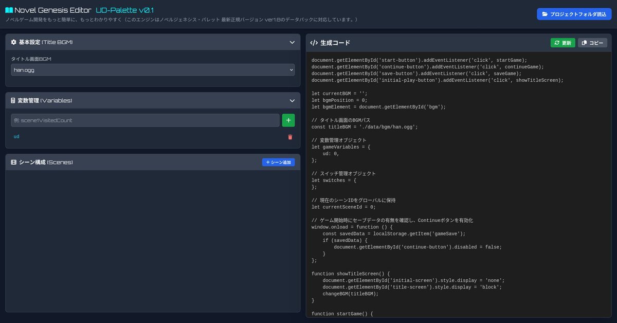 JS Editor v2-IAの新型モデル「Novel Genesis Editor UD-Palette v0.1」を近日公開予定です。 このツールは、私が高1の時に開発したノベル #ゲーム開発 用のデータパック「Novel Genesis Palette」の専用開発エンジンになります。 これでVScodeの知識がなくても楽々ゲーム開発✨ #ゲーム制作 x.com/64_61_69_64_6f…