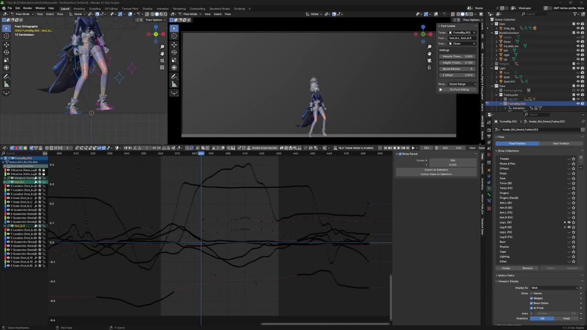 IKに入ってるキーフレームについて、リターゲット後に足滑り/Foot Slindingが起こってしまう現象を指定した間隔で調整するアドオン(Foot Locker的な?)作れたのであとでGithubにでも上げておくよ #blender #b3d #mocap