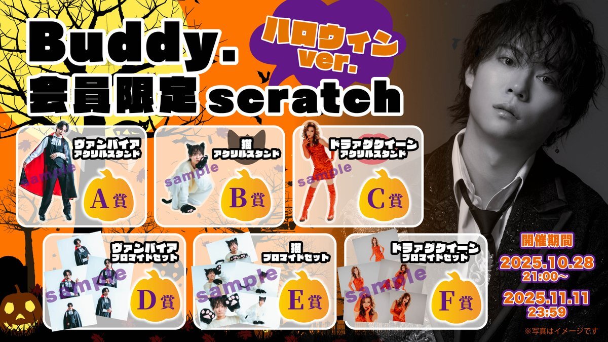 / 「Buddy.」 FC会員限定スクラッチ 開催決定🎉 \ 今回は「ハロウィン限定コスプレ ver.」🎃 杉本琢弥FC「Buddy.」にご入会されている会員様限定のスクラッチを開催します👑 ここでしかGET出来ないグッズとなりますので、ぜひご参加ください✨ <開催期間> 10/28(火)21:00〜11/11(火)23:59