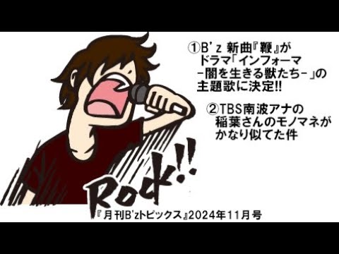 ①B’z 新曲「鞭」がドラマ「インフォーマ -闇を生きる獣たち-」の主題歌に決定!!②TBS南波アナの「稲葉さんモノマネ」がかなり似てた件『月刊B'zトピックス』2024年11月号】 ぜひご覧ください。 ★次回(3/16月 予定) 内容決まり次第お知らせ致します #Bz youtu.be/yBXS8lgbvmQ