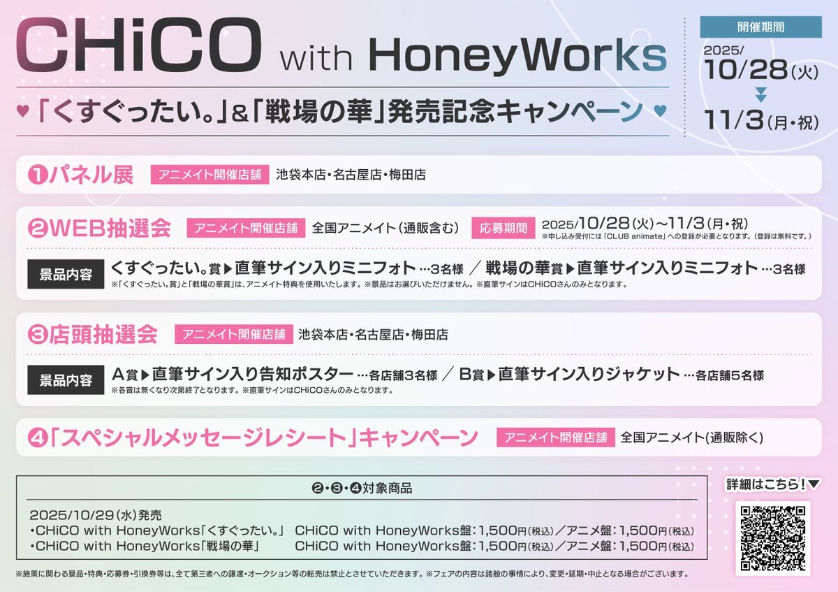 【CD入荷情報】 10/29発売 「#CHiCO with HoneyWorks/「くすぐったい。」 「戦場の華」」 好評発売中キサ🎉 各種 #アニメイト特典 は『ミニフォト』! 『発売記念キャンペーン』も開催です! 詳細はPOPをチェック!🔽 pic.x.com/GAZw1RuV4C