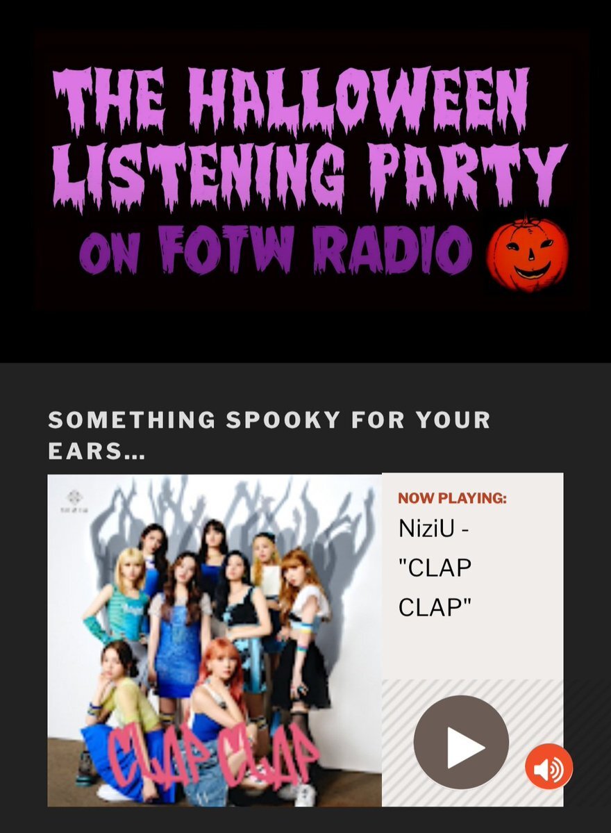 #halloweenradio 🇦🇺 @fotwradio 🎃Halloween listening party🎃 10.13 Thank you for ON AIR! ★#CLAPCLAP × #NiziU オーストラリア🇦🇺シドニー から世界へ From Australia to the World Thank you for everything🫶 @NiziU__official @jypnation @JYPE_JAPAN pic.x.com/jLLstYdgwJ
