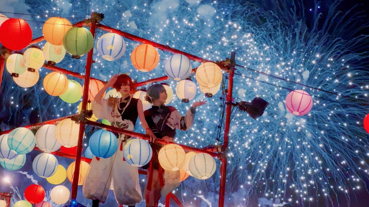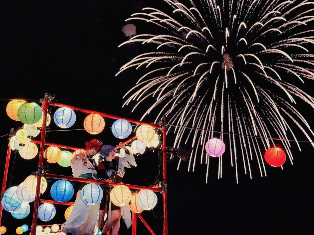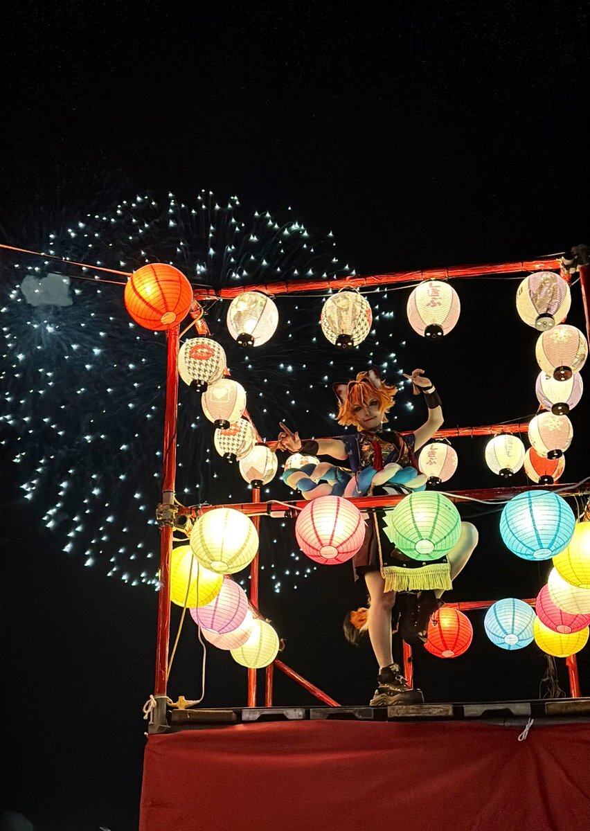 無加工でお届け🦊💖 めちゃくちゃ楽しんでるところをほんとーーーに綺麗に撮っていただいた( ; ; ) #大洗海上花火大会 #千櫓祭 #COSFESTREASURE pic.x.com/TyZFYQ8I0x x.com/dekanochan/sta…