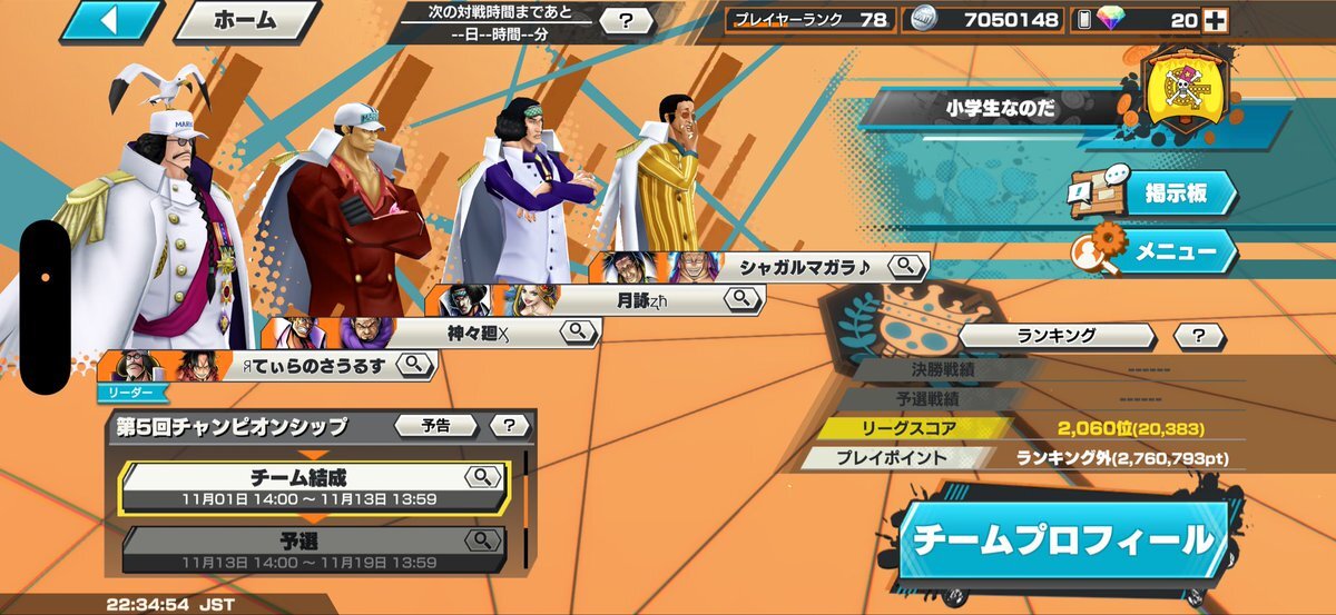 5日(水)の22時からcs交流戦できるチームを探してます!是非対戦よろしくお願いします! #OPBR #バウンティラッシュ #cs交流戦 #交流戦募集