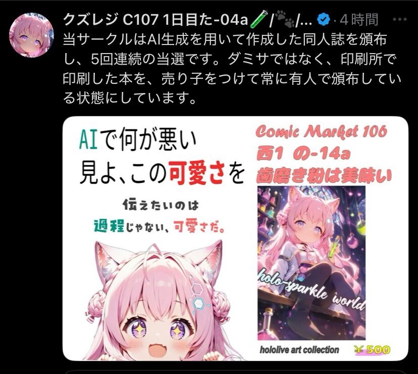 返信先:@comiketofficial生成AIユーザーは出禁にしろ 特にこいつを今からでも出禁にしろ #NOMORE無断生成AI #CreateDontScrape pic.x.com/SVrwWuPzE3