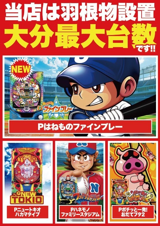 恒例の新機種紹介シリーズ! 第8弾はっ! ・Pはねものファインプレー p-town.dmm.com/machines/4878/ 南大分店の羽根モノシリーズに 名機になり得る機種が大登場✨️ 台数規模は大分最大級へ👍 遂に明日より稼働開始予定なり。 #パチンコ #羽根モノ #大分最大級 #ファインプレー #ファミスタ #Dステ南大分 pic.x.com/UolHuERlAJ
