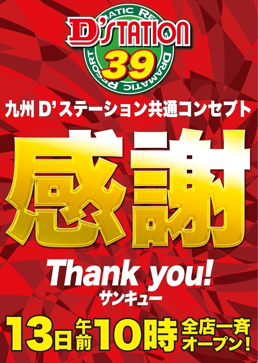 明日11月13日[木曜日]は! 『感☆謝〜Thank you〜』 気付けば11月も中盤戦。 ここらで1発、活を入れなければ😡 もう、何も言いませんが、 朝の抽選からお越しくだされ🙇 ↓店舗から半径2キロ内で受付中 chusenonline.jp/main/linelogin… #感謝 #13日 #Dステ南大分 #スロット #パチンコ pic.x.com/emgFyvcl7p