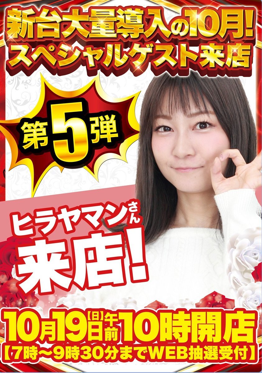 明日19日[日曜日]は! 『感☆謝〜Thank you〜』      × 『777リーグのヒロイン  ヒラヤマンさん初来店✨️』 大分D'ステ2店舗を 大いに盛り上げて貰います! 臨時駐車場もしっかり 準備してお待ちしております👍 @hirayaman2 #パチンコ #スロット #ヒラヤマン #感謝 #19日 #日曜日 #Dステ南大分 pic.x.com/HyGEOg173V