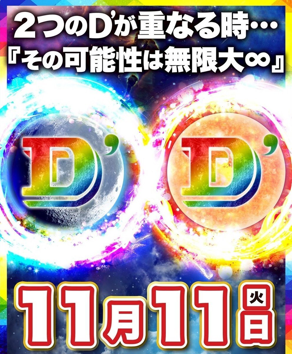 明日11月11日[火曜日]は! 年に1度のゾロ目の日✨️ 内容盛りだくさんの1日を👍 多くは語りませんが、 朝イチからのお越しを強く オススメ致します! #Dステ南大分 #ゾロ目 #11月11日 #スロパチ #合同 #総付配布 pic.x.com/J9i4q4nuoV