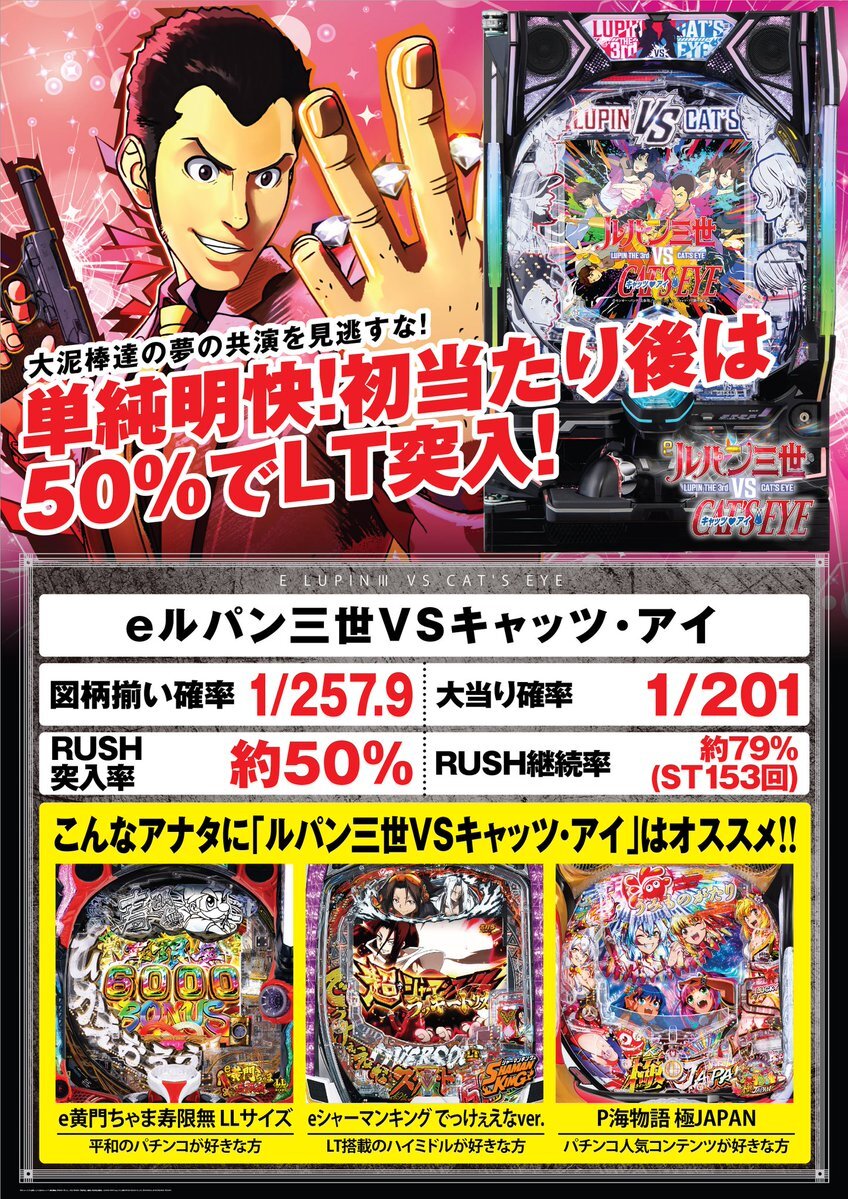 恒例の新機種紹介シリーズ! 第7弾はっ! ・eルパン三世vsキャッツ・アイ p-town.dmm.com/machines/4887/ 最近流行りのLT突入率高い系です。 私の好みは「瞳さん」 キャッツアイの3人が ルイ・ヒトミ・アイと 眼に関する名前だと知った時は🧐 #パチンコ #最新台 #11月6日 #Dステ南大分 #ルパン #キャッツアイ pic.x.com/hcMPCyGcJJ