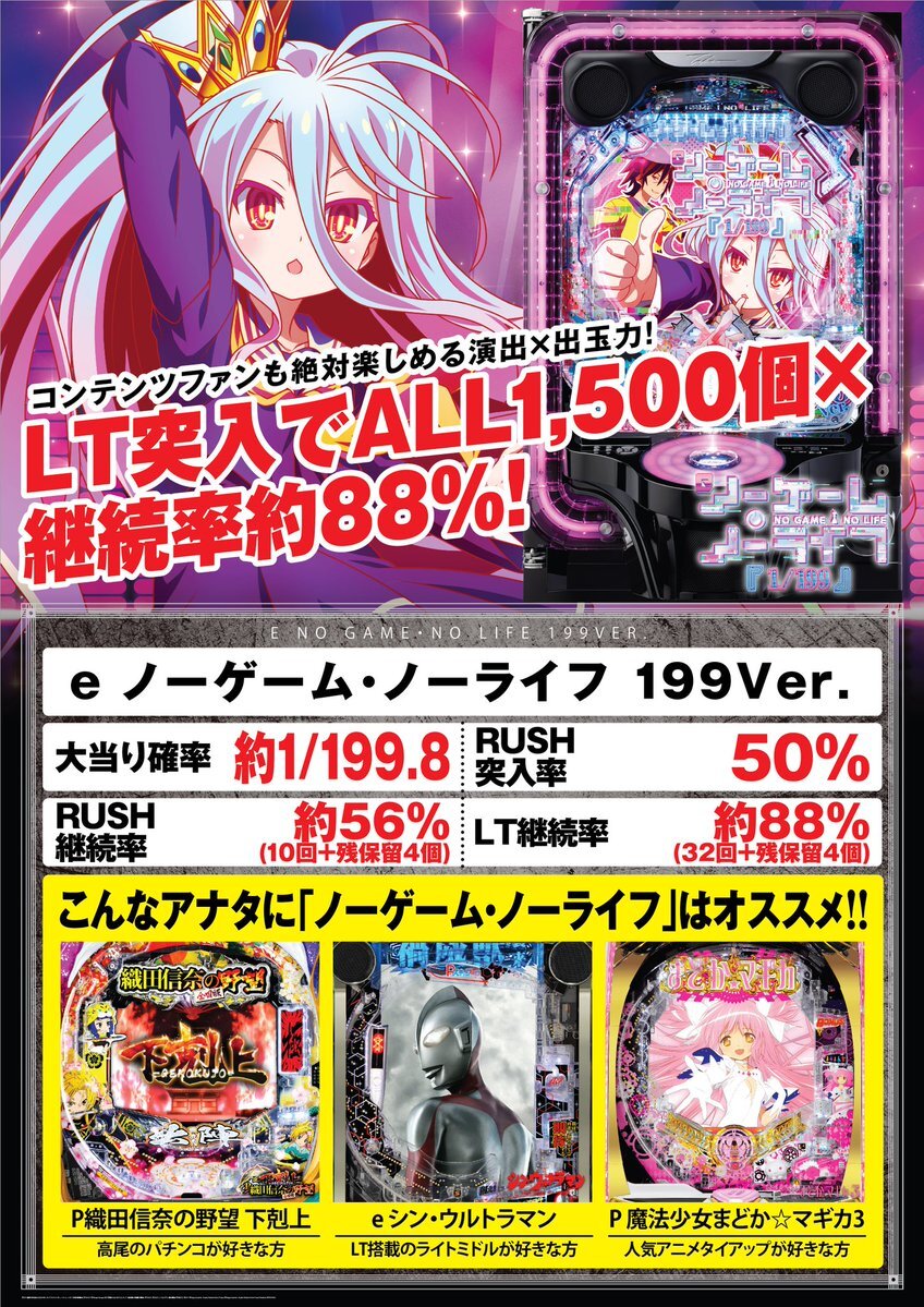 恒例の新機種紹介シリーズ✨️ 本日は第4弾っ! ・eノーゲーム・ノーライフ p-town.dmm.com/machines/4863/ 4年以上前に北電子さんから スロット機で出ましたね。 今回はライトミドルパチンコ! ノゲノラッシュ中に当たればLT 突入です😏 ネオン的新筐体で登場✨️ #最新台 #ノゲノラ #パチンコ #Dステ南大分 pic.x.com/ZLIqDhSQmx