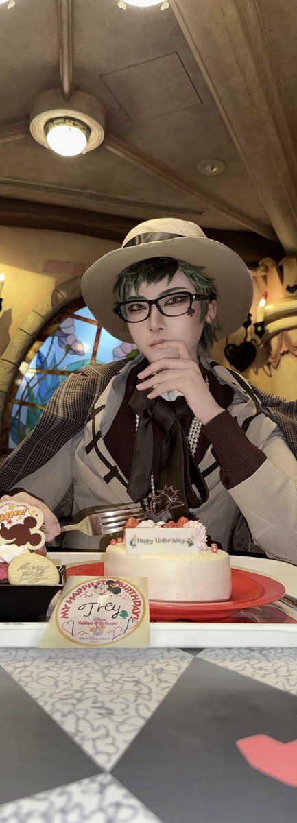 🫖Happy UnBirthday🎂 24日キャストさんからお誕生日シール突然貰えて嬉しかったので写真に添えました ピアスが♣️のトレイ推しのキャストさんありがとうございました☺️ twst/cosplay #Dハロ仮装ツイステ #Dハロ仮装2025 pic.x.com/pSVdiVJH4q