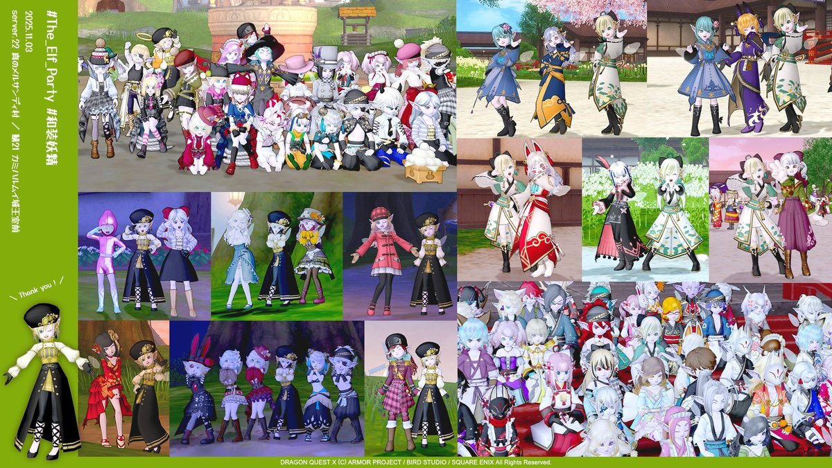 11月3日は、【エルフの日】 ということで、#エルフェス に行ってきました〜🧚♀️✨ 色んな方と攻略できて楽しかったです*.・🤍𐙚 一緒にパシャしていただいた皆さまありがとうございました✧p📷qω•,,´)💕 #DQ10エルフの日 pic.x.com/qhSohOiKl7