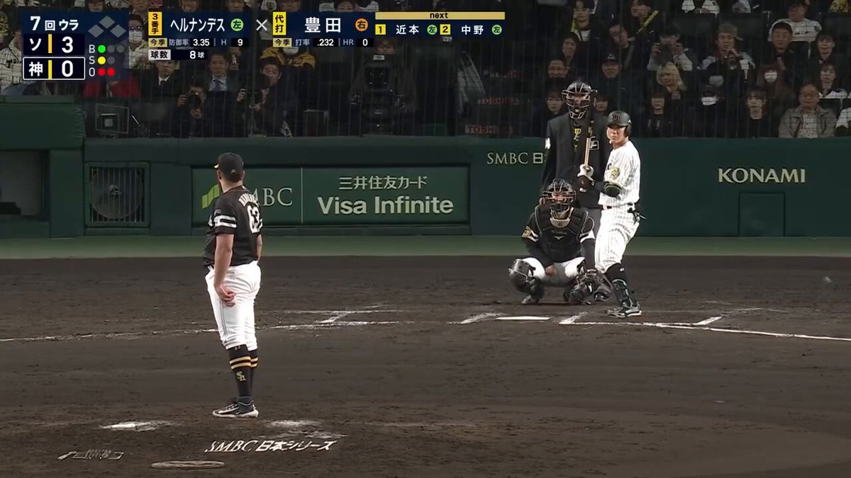 🏟️SMBC日本シリーズ 第4戦 【阪神🆚ソフトバンク】 7回裏 🎦ソフトバンク3番手 ヘルナンデス投手 三者凡退に打ち取ります👊 ─・─・─・─・─・─・─・─・─ 🔷ただいま日テレ系地上波で生中継!!(全国ネット) 🔶TVer▶️tver.jp/live/special/l… 🔶hulu▶️hulu.jp/livetv/285/?cm…
